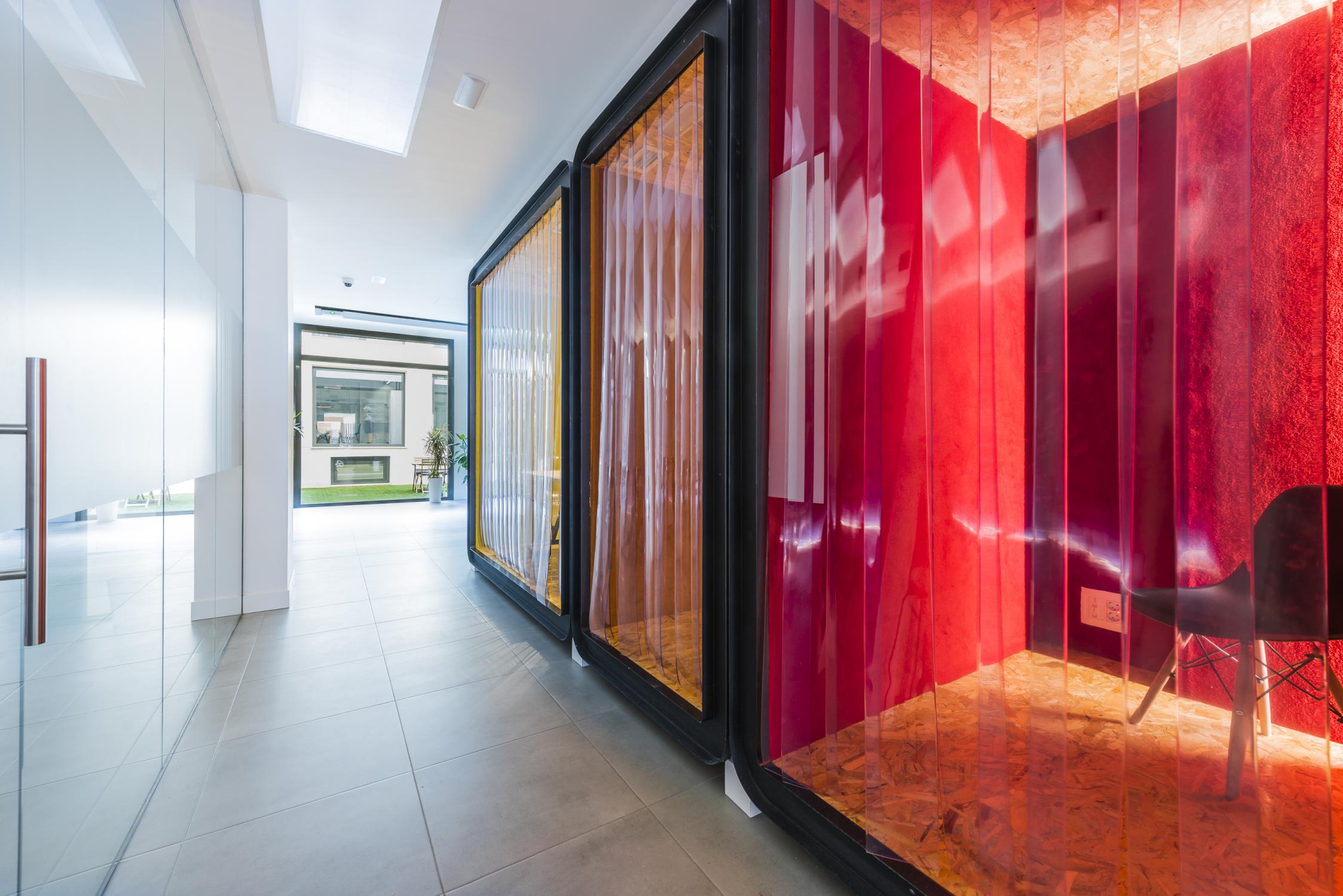 600m2, distribuidos en dos plantas y un patio, con amplios espacios, tranquilos y contenidos, para satisfacer las necesidades del usuario, jugando con la combinación de materiales, texturas, colores y plantas, y cubierto de luz natural, el espacio de trabajo demuestra físicamente cómo la arquitectura puede estimular la dinámica de trabajo.
