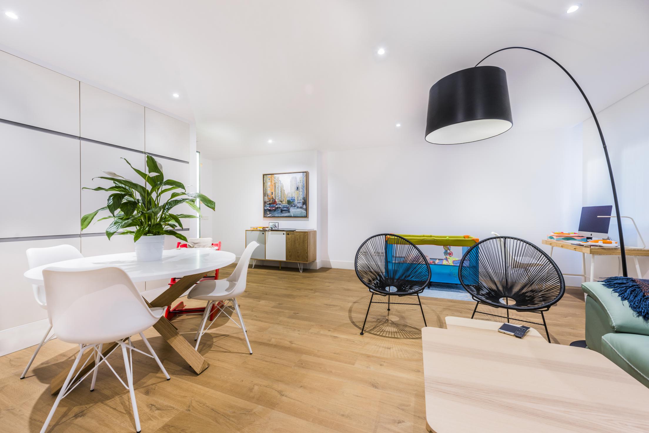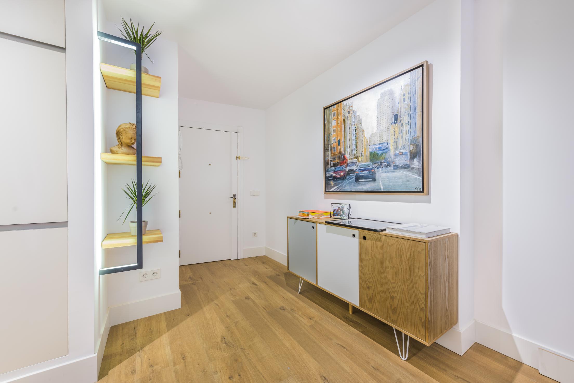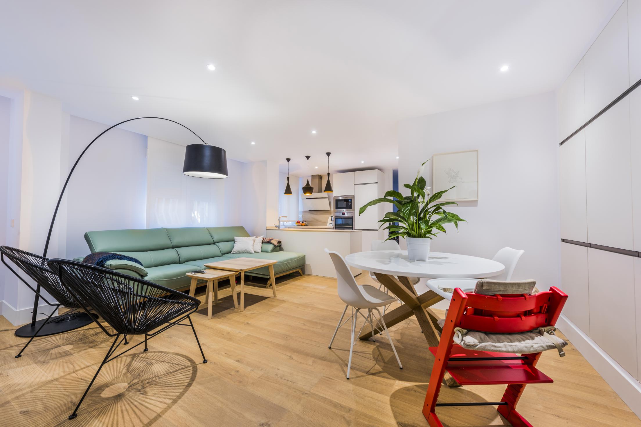 Siguiendo la filosofía que nos caracteriza y, al igual que ocurría en el apartamento contiguo, la mejora en la entrada de luz natural se completa con una cuidada elección de la materialidad y de la paleta cromática de la vivienda.