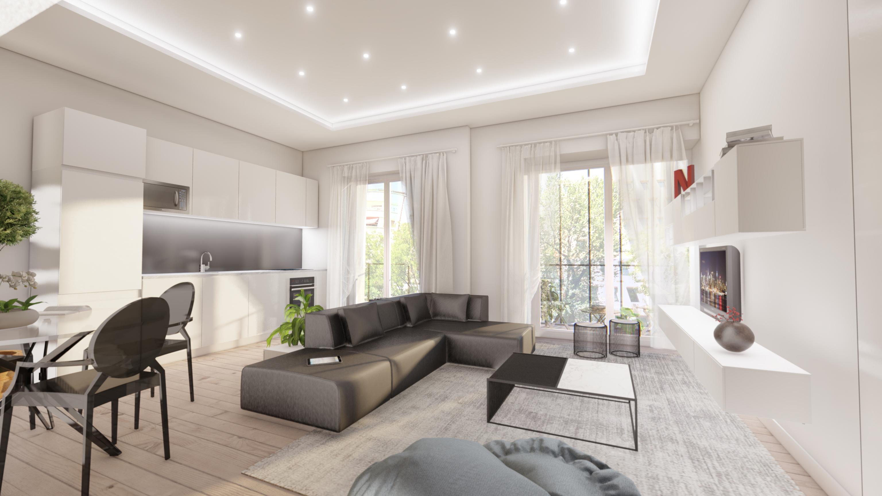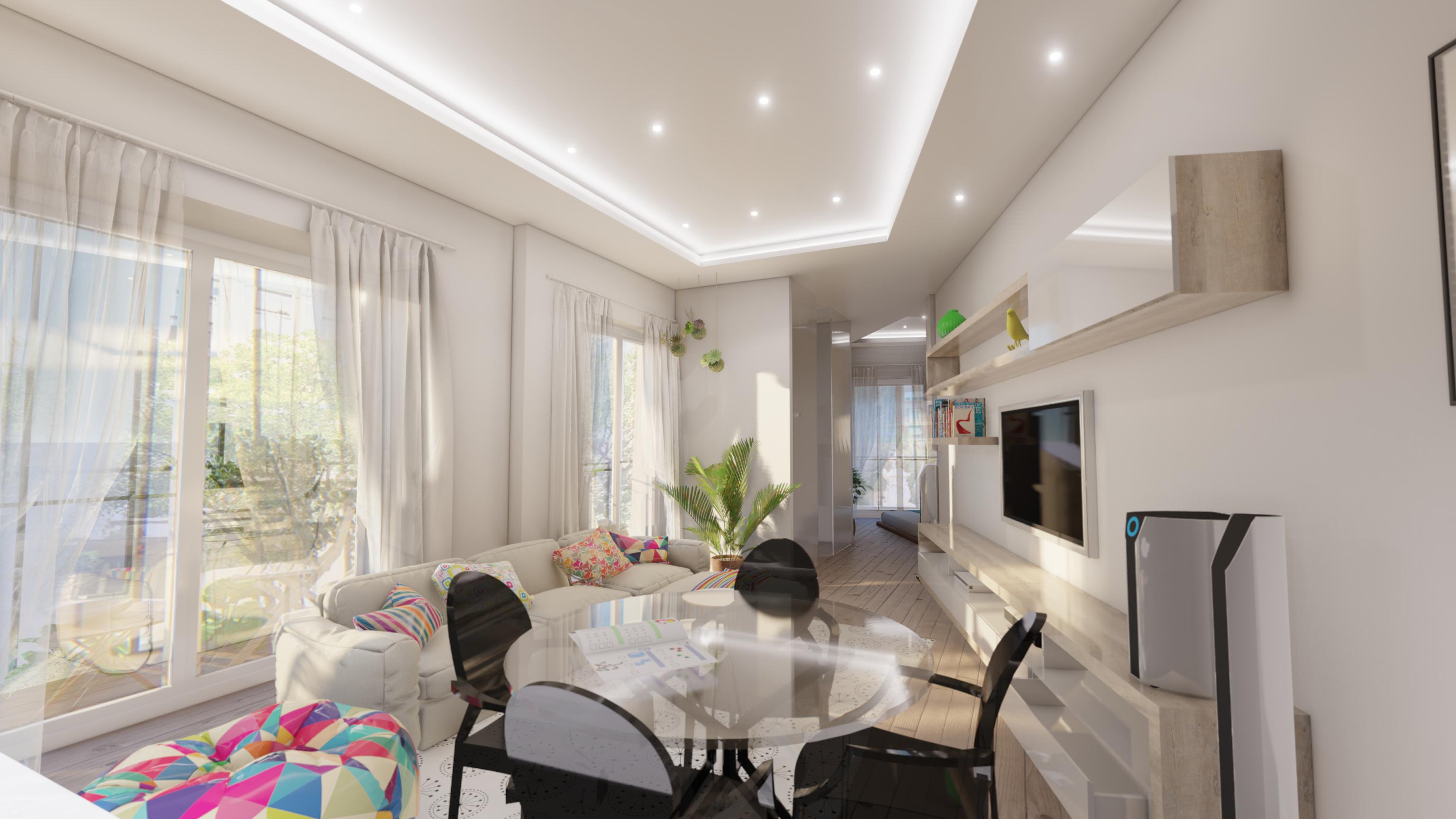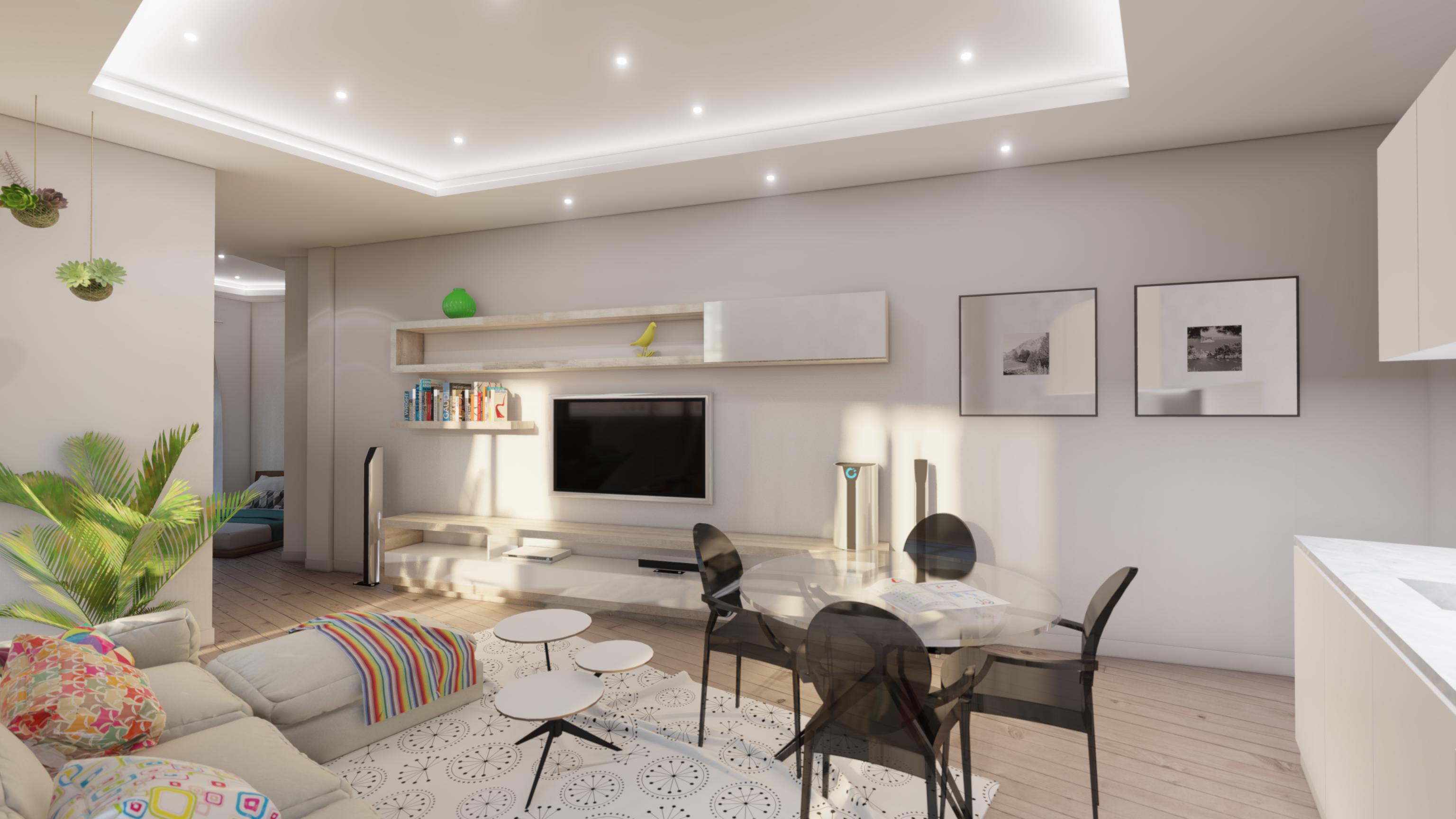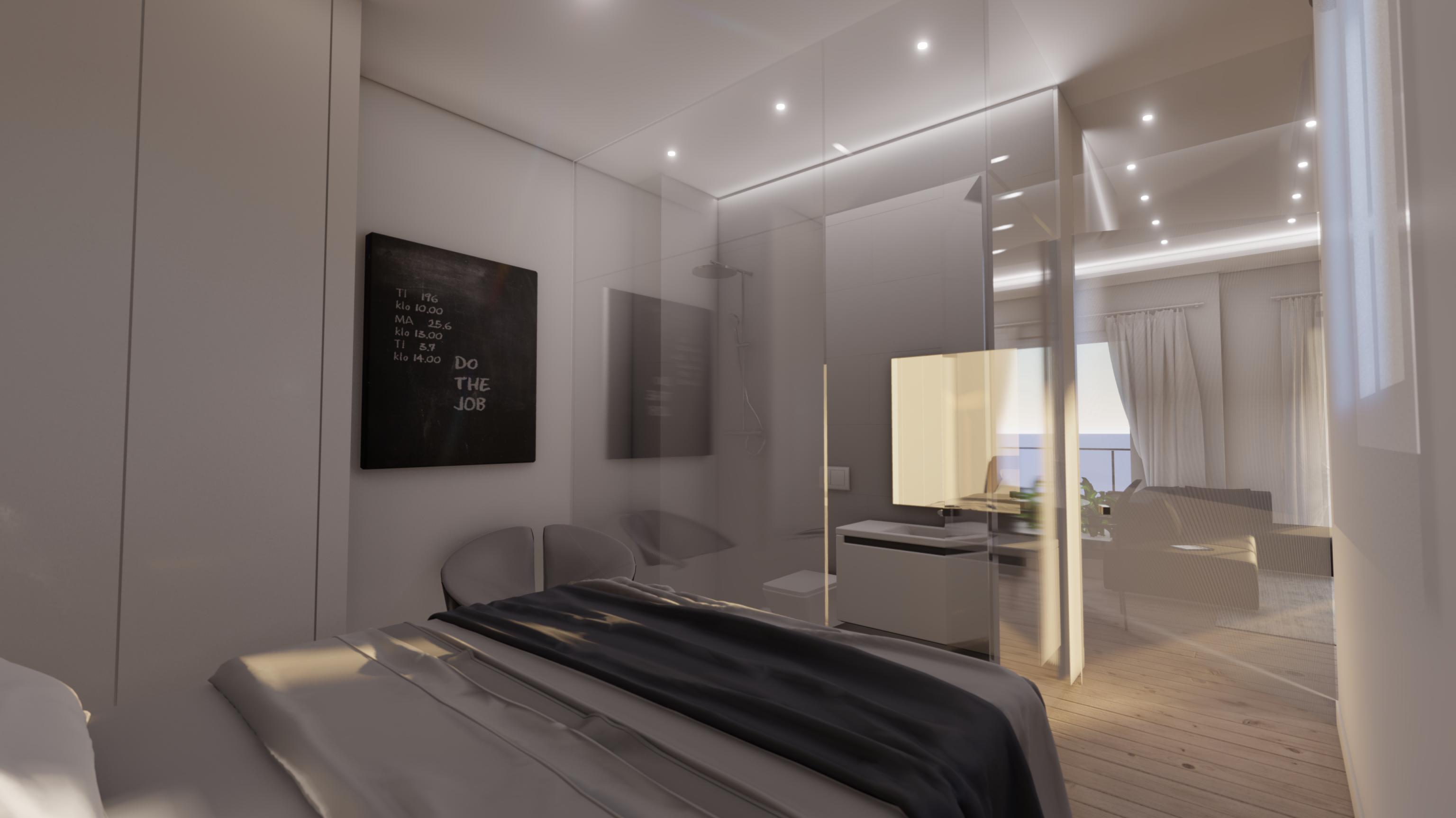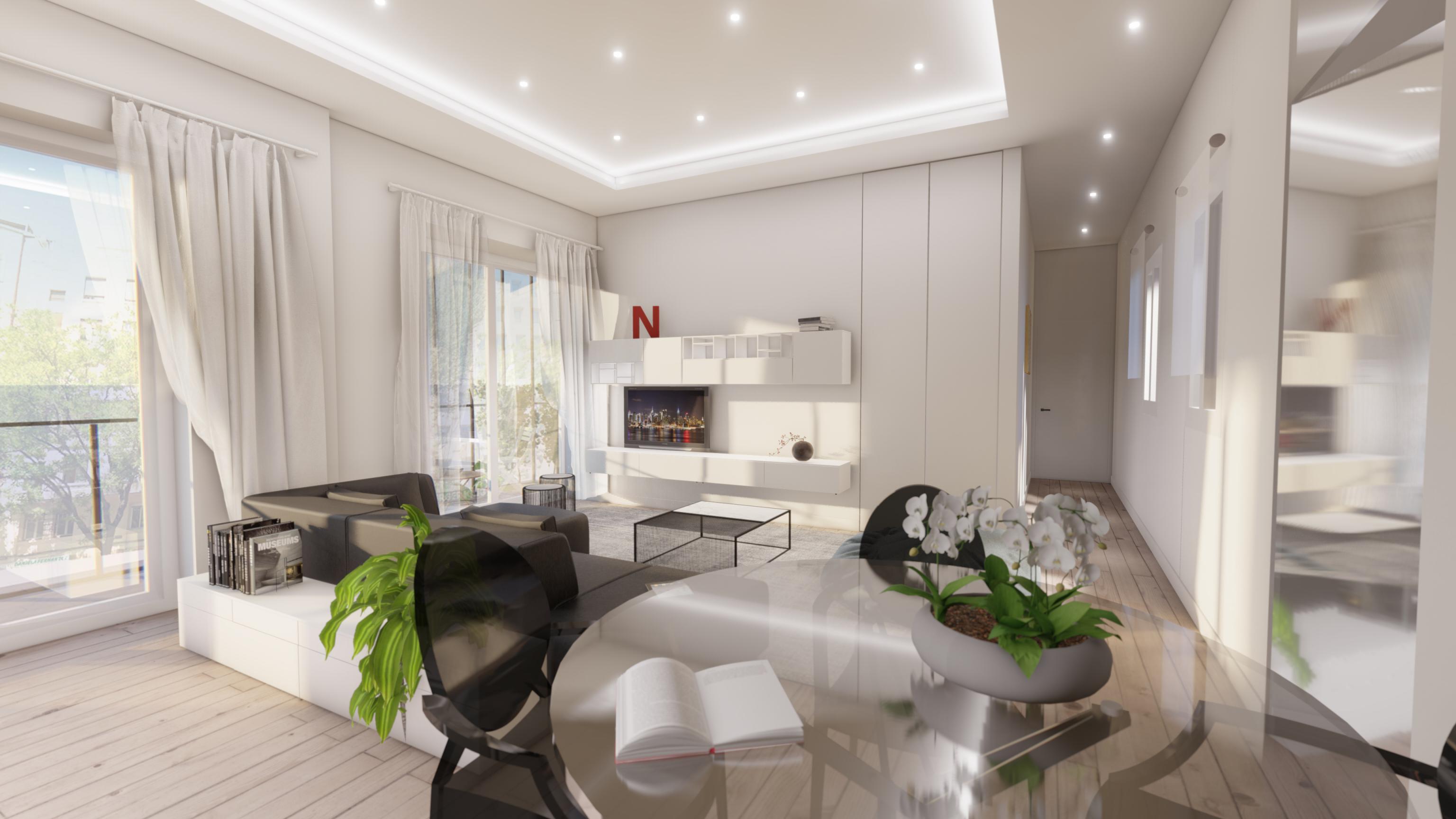 La intervención consiste en ajustar una antigua vivienda a las necesidades de la vida contemporánea, y para ello, se hace una reorganización del espacio disponible permitiendo la aparición de tres viviendas. En todas ellas se potencia la apertura de los espacios vivideros hacía la calle. Merece especial mención la vivienda que recoge el chaflán de la Glorieta. En este caso, toda la distribución de la vivienda se realiza para potenciar la vista desde cualquier punto de la casa hacía este nudo urbano. Es decir, desde la puerta de entrada ya se siente la tención diagonal hacía la Glorieta de Bilbao. Los acabados se mantienen neutros para que el protagonismo lo adquiera la vida que decidan seguir sus ocupantes.