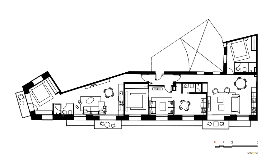 En el barrio de Chamberí, aparece la glorieta de Bilbao, hito en el que confluye uno de los ejes comerciales más importantes de la capital: la calle Fuencarral. En este potente enclave surge la oportunidad de realizar una intervención en un antiguo edificio de mediados del siglo XX. Que sigue la singular morfología de balcones y balcón-invernadero característicos de esta parte de la ciudad.