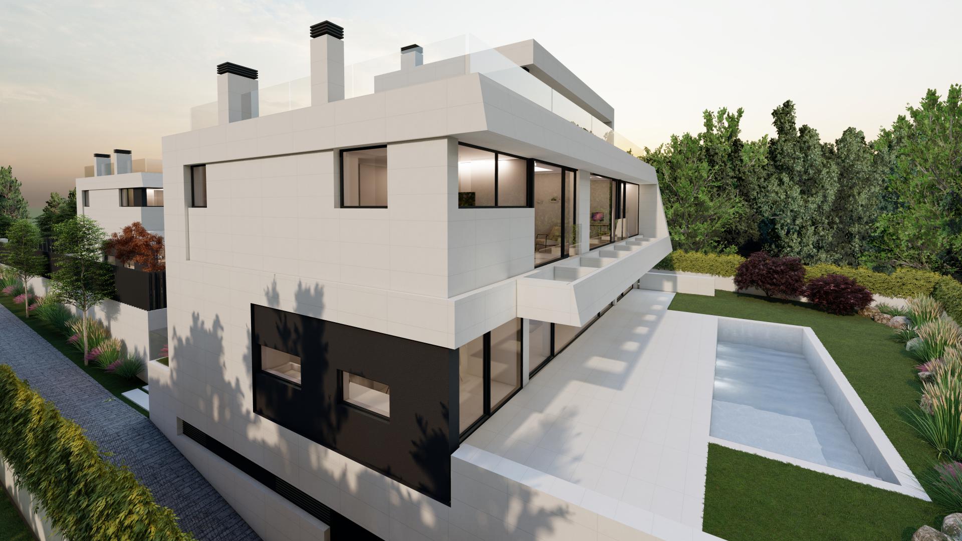 La vivienda B, se trata de la segunda vivienda unifamiliar, algo mayor que su gemela, con 810 m2 construidos, distribuidos también en cuatro plantas.