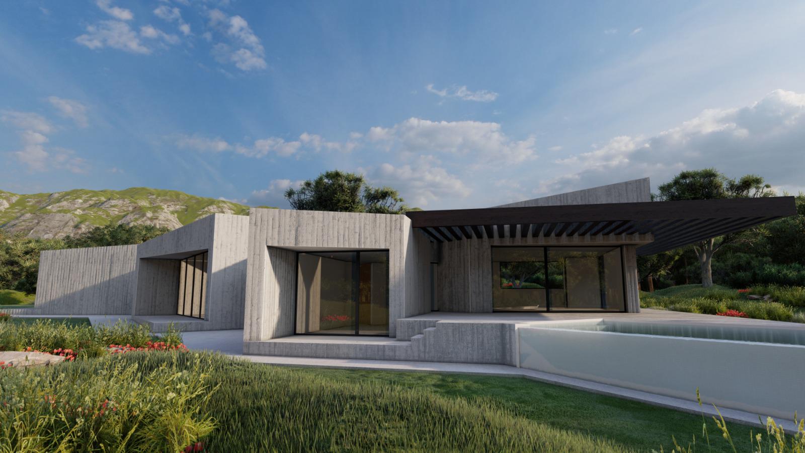 Como resultado obtenemos dos volúmenes, articulados mediante elementos de transición, como son las pérgolas, que vuelan sobre el terreno, aportando protección y cobijo bajo ellas, a la vez que permiten esa transición entre el interior de la vivienda, y el exterior, según la orientación.